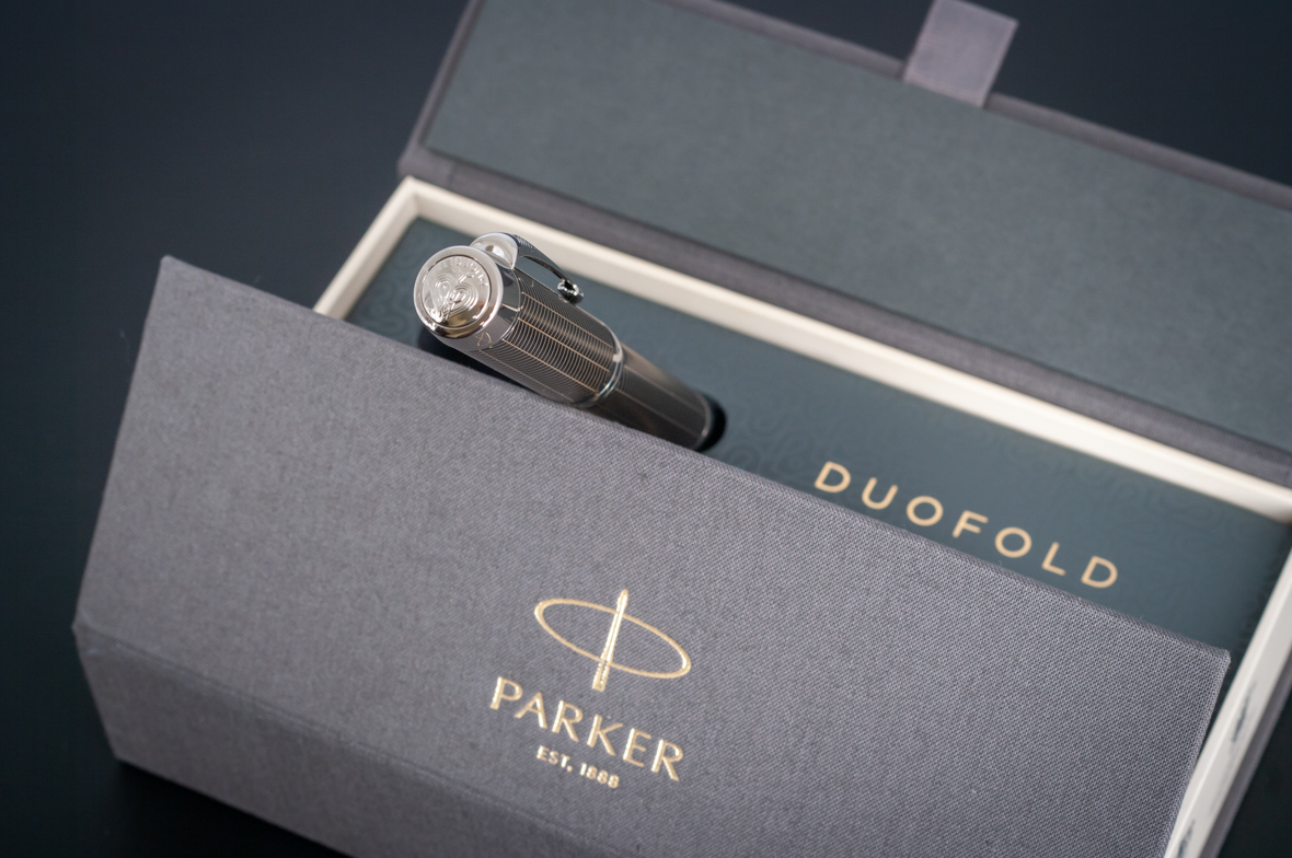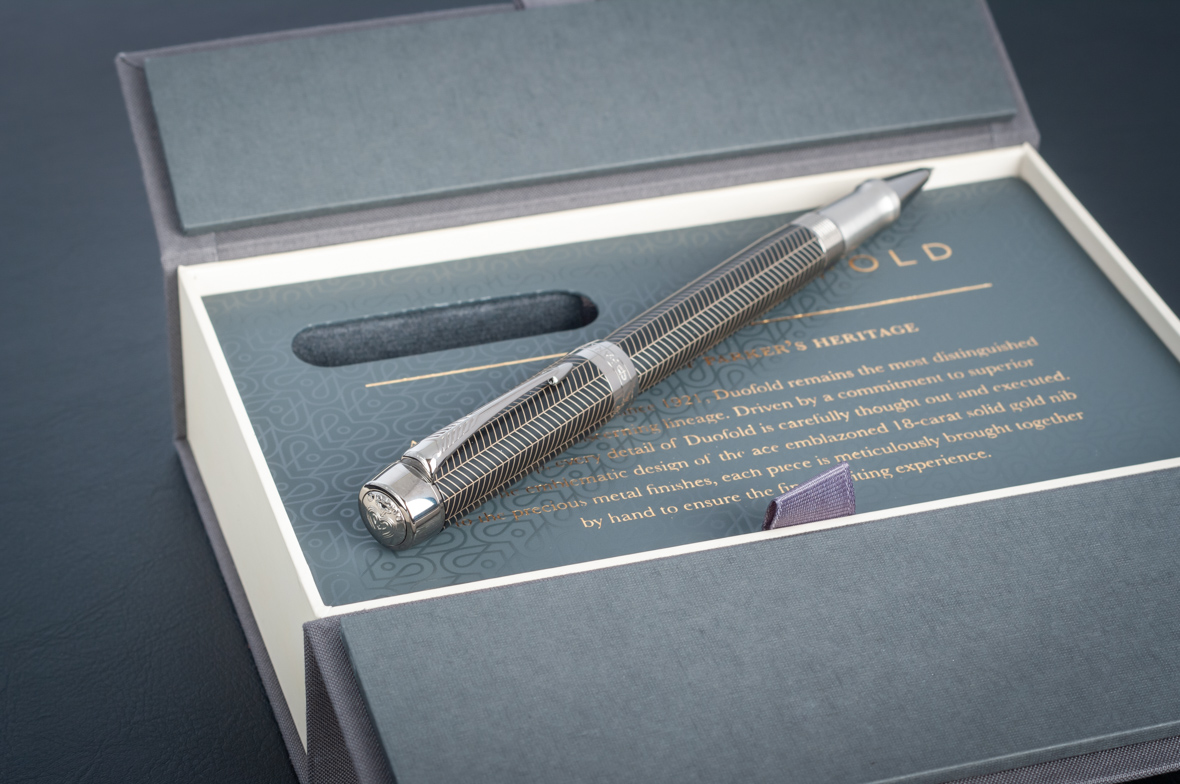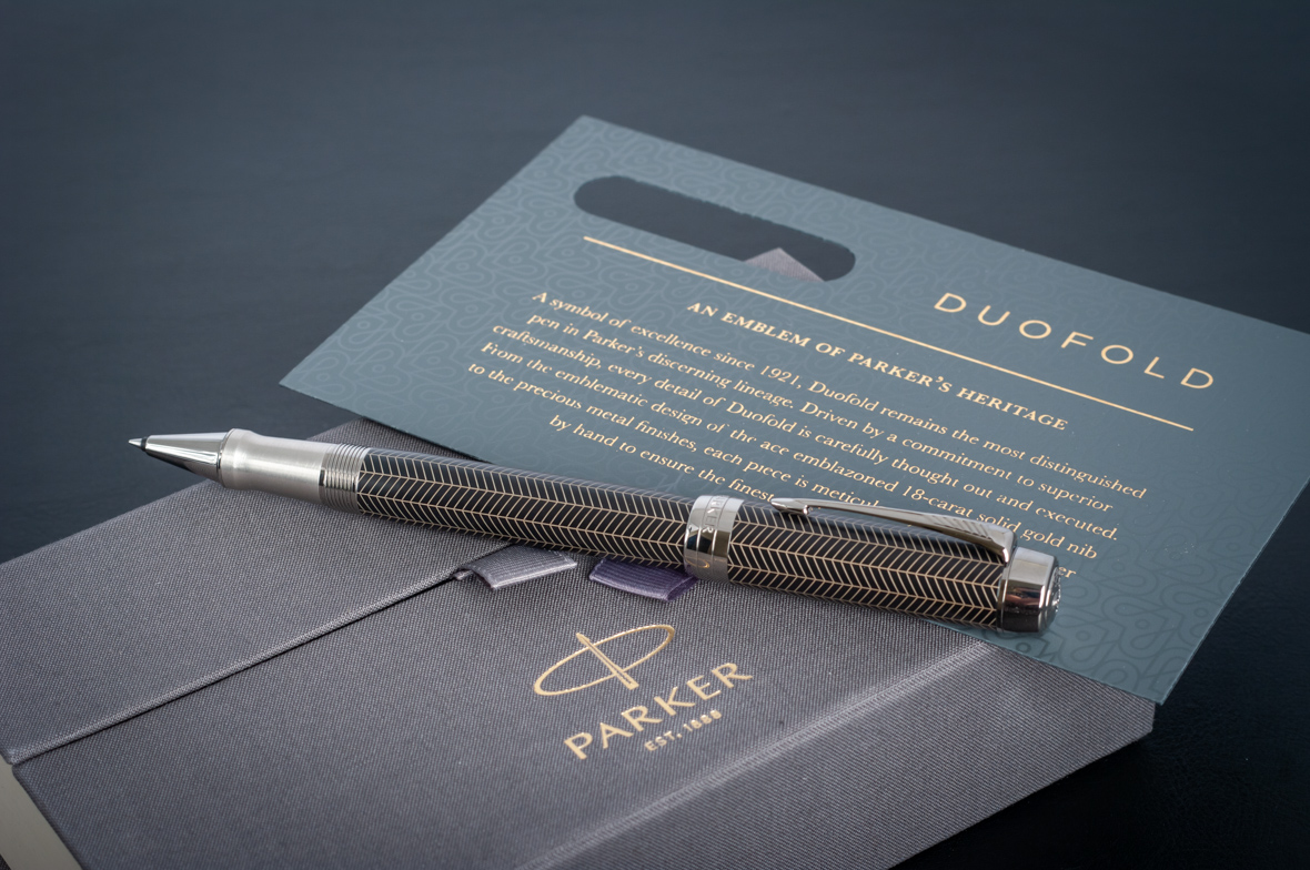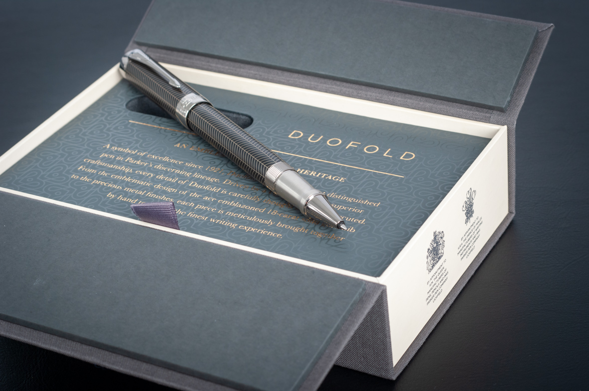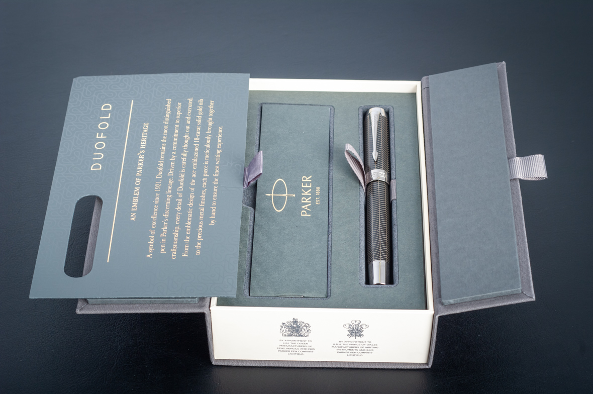 Ручка роллер Parker Duofold Prestige Centennial Black Chevron CT от официального дилера Parker в Октябрьске. Вы можете дополнительно заказать гравировку, которая подчеркнет Вашу оригинальность и придаст памятность статусному подарку. Все ручки Паркер поставляются в фирменном футляре.